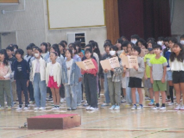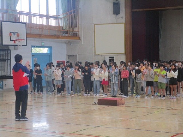 今日から音楽会に向けた体育館練習がスタートしました。各学年に体育館の割り当てがされて、本格的に学年での練習が行われていきます。4時間目は5年生が全員そろって集合し、学年スローガンが発表されて、合唱・合奏の並び方の確認をしました。初日から早速、合唱曲の練習も行われ、体育館にきれいな歌声が響き渡りました。