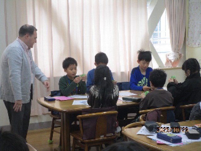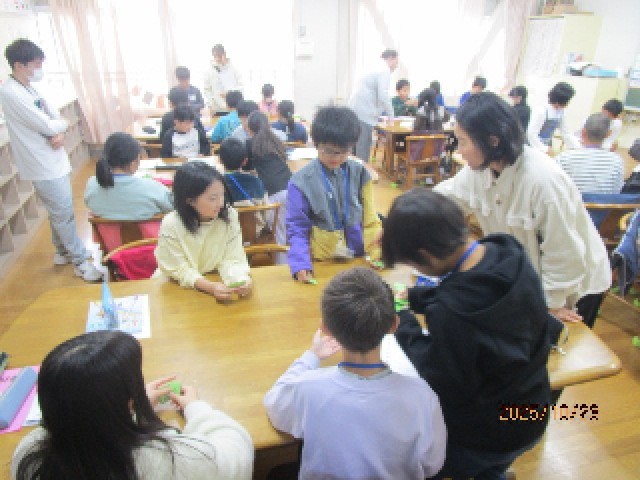 1組の3時間目の外国語活動は、アルファベットをマスターするために、カードを使って楽しく学習します。アルファベットの大文字と小文字が書かれたカードをランダムに配り、グループで楽しく一致させるゲームに取り組みました。専科の先生とALTのお手本を見て、活動が始まります。子供たちはきちんと発音もしながら、楽しくアルファベットをマスターすることができました。