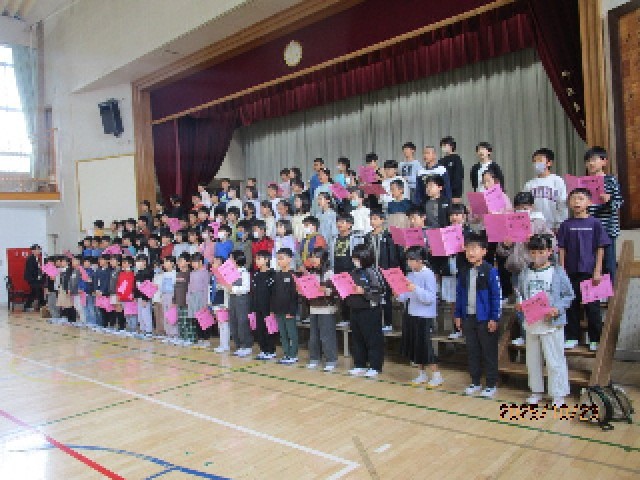 3時間目の3年生に続いて、4時間目は4年生が全体練習を行いました。実行委員の子供たちが前に立ち、今日の練習のめあてを確認します。2人組・3人組になって頭声発声の練習を行った後、実際に合唱曲である「小さな勇気」を全員で歌い、体育館にきれいな歌声が響き渡りました。さらに練習を積んで、本番までにもっと完成度を高めていきましょう。