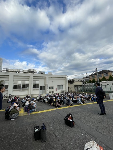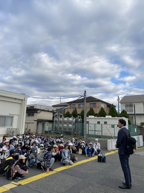 今日は5年生が社会科見学に行きます。天気もよく、絶好の校外学習日和です。出発式が行われ、今日の見学のめあてを確認さしました。