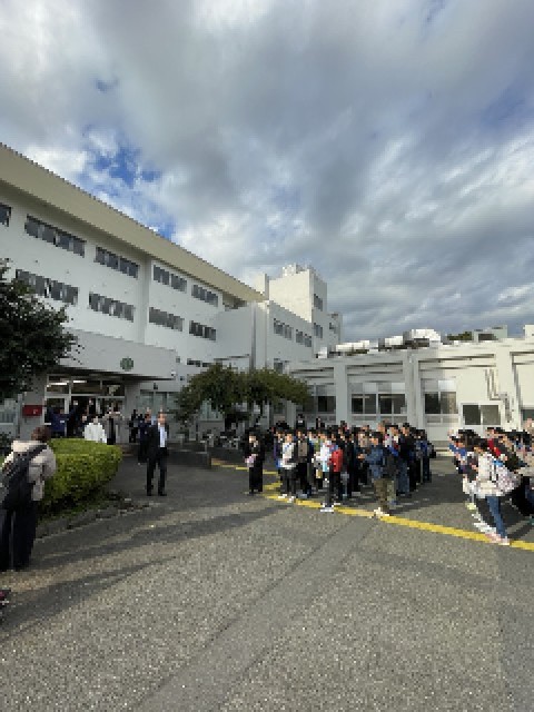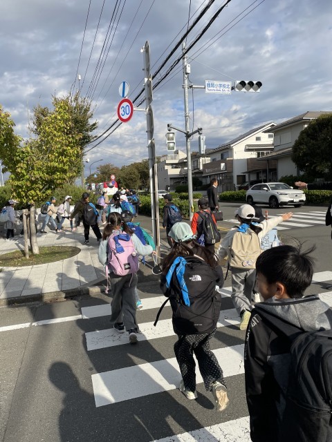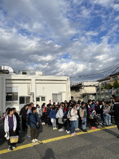 出発式で今日の見学のめあてが確認されました。バスの待つ鶴間公園まで、安全に気をつけて移動します。