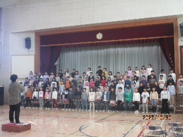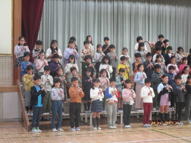 1週間後に迫った音楽会に向けて、体育館では今日も朝から学年練習が行われています。1時間目は3年生が、合唱と合奏の練習を、本番さながらに行っていました。歌声や演奏だけでなく、入退場や整列の仕方なども重要です。先生の指示のもと、子供たちの表情は真剣そのものでした。