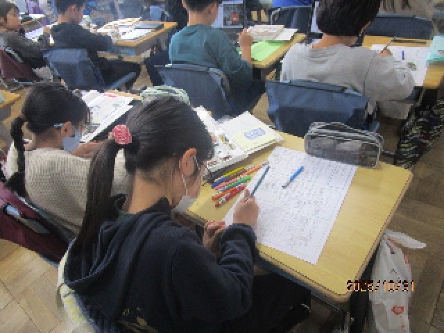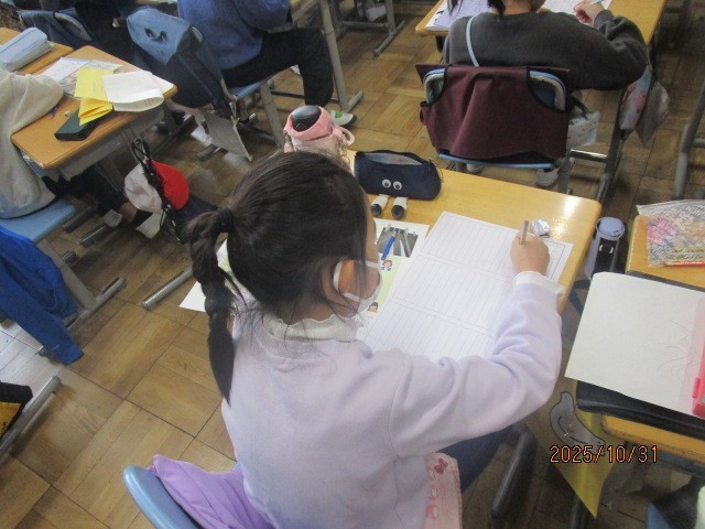 3組の教室では、先日の社会科見学のまとめとして、新聞づくりに取り組んでいました。実際に見て聞いてきたことを中心に、さらにパソコンでも調べてまとめていました。