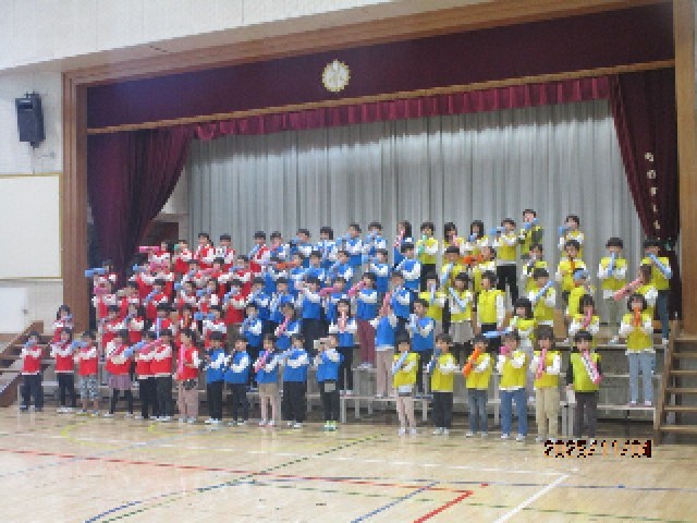 4時間目の1年生の音楽会の練習は、衣装を身に付けて本番さながらに行われました。合唱では、体育館いっぱいに元気な歌声が響き渡っていました。鍵盤ハーモニカもきれいな音色になっていて、完成度を上げています。本番がとても楽しみです。