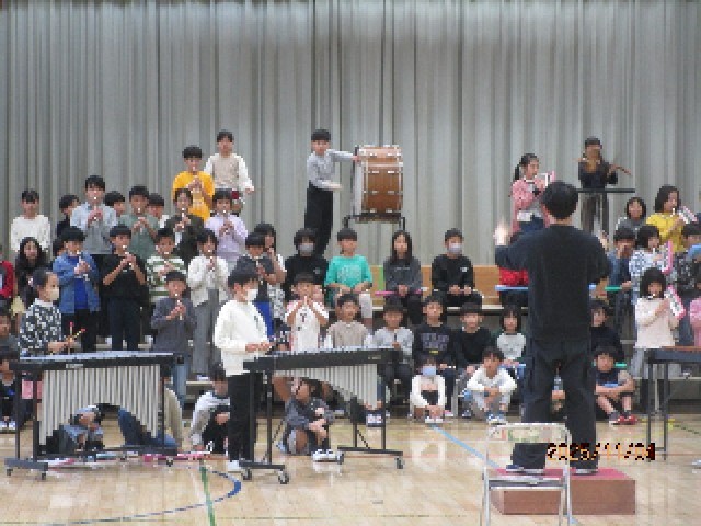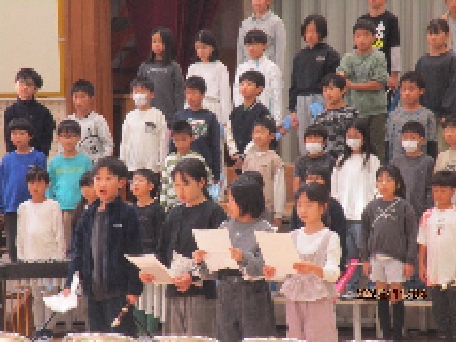 午後の6時間目は、4年生が体育館での音楽会練習です。入退場から時間を図って行われました。合唱・合奏とも自分の練習してきたパートをきっちりとマスターし、演奏を楽しんでいる様子が見られます。本番まで残り数日ですが、さらに高みを目指して練習に励んでほしいです。