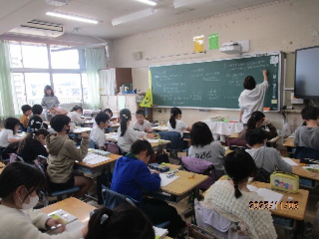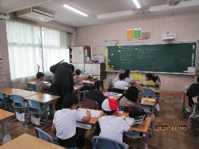 3時間目の4年生は、算数少人数での授業です。式と計算の単元の学習で、既習事項を使って、大きな数の計算を工夫して行います。先生にアドバイスをもらいながら、どの教室でも一生懸命に問題に当たっていました。