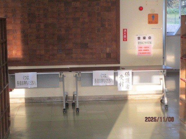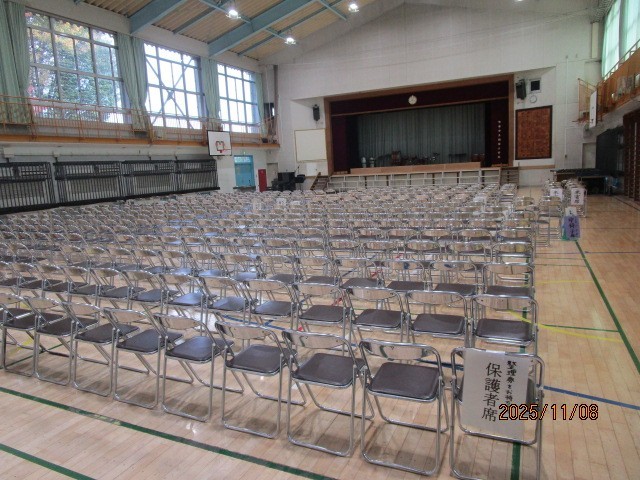 今日は土曜授業日で、音楽会の保護者鑑賞日にあたります。体育館の音楽会の準備は万端です。お天気もよさそうです。