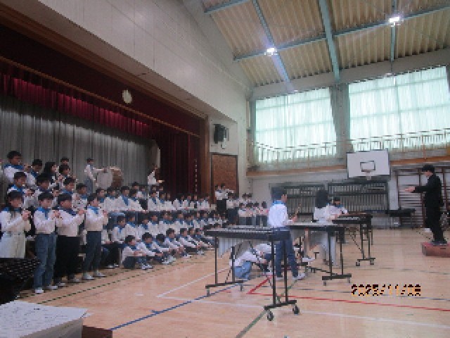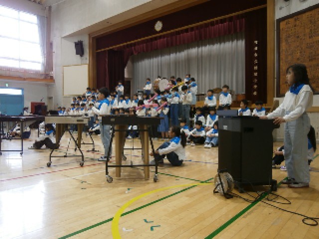 アップテンポの楽曲を、4年生はみんなで息を合わせて演奏します。いろいろな楽器が登場し、たくさん練習してきたことが分かる演奏になっていました。