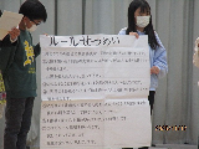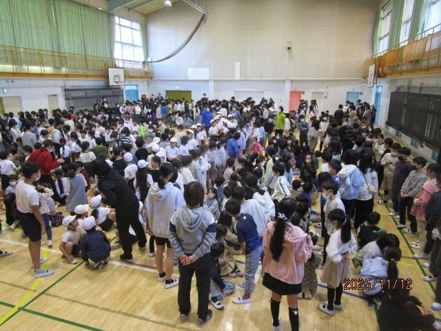 全校児童が集まっての久しぶりの児童集会が体育館で行われました。今日はクラス対抗の「伝言ゲーム」です。集会委員の子供たちによってルール説明が行われ、いよいよスタートです。子供たちもやる気満々です。