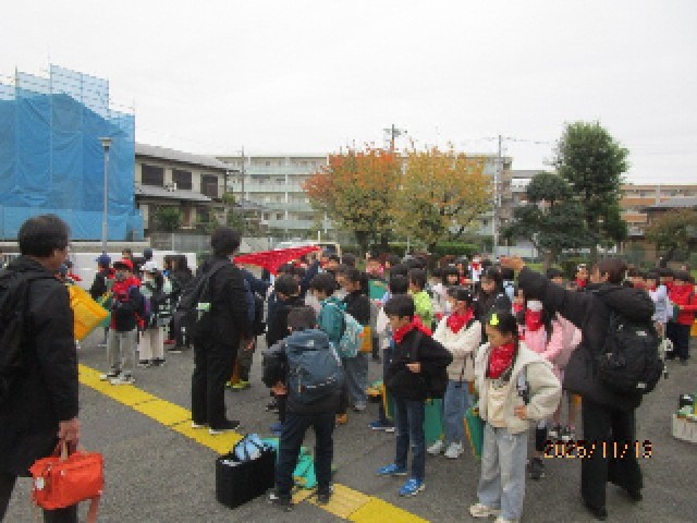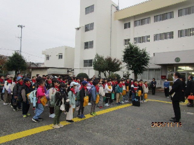 今日は3年生が社会科見学です。8時集合で子供たちは、先生の指示のもとで出発式が行われました。見学のめあてをしっかり意識して、楽しい社会科見学にしてください。行ってらっしゃい。