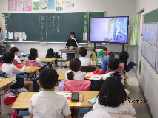 2年生の教室で、保護者の方々による朝の絵本の読み聞かせが行われました。月曜の早朝からお家の方々にご来校いただき、子供たちもうれしそうにお話を聞いていました。ありがとうございます。
