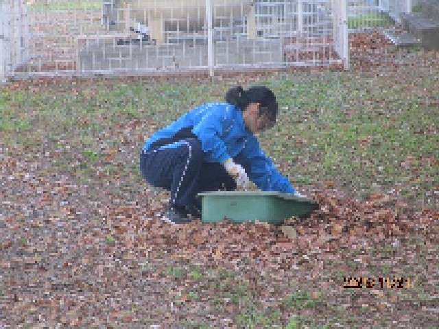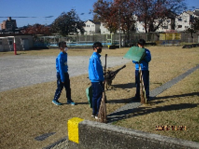 つくし野中学校の職場体験も今日が最終日です。今日は朝から、校舎内の清掃や体育館裏の落ち葉の回収作業を体験しました。用務主事さん方の指導のもと、みんなで協力しながら進めていました。