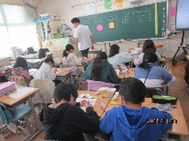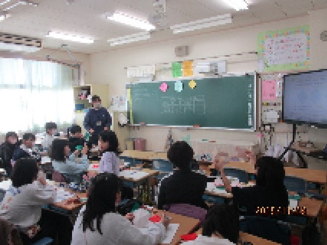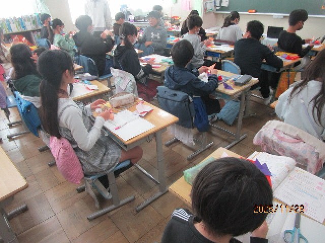 5年生の算数少人数の授業は、多角形についての学習です。実際に折り紙を使って、いろいろな多角形を作って、それぞれの図形の特徴について調べました。具体的な操作を行うことで、知識の理解が深まり、学習への興味も高まっているようでした。