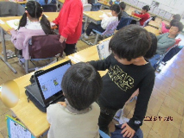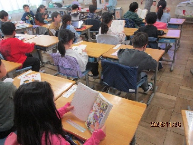 2組の4時間目は、教室での読書の時間です。図書室で借りた本を読む子もいれば、友達と一緒にクロムブックのデジタル図書を楽しむ子もいました。読書の楽しみ方もいろいろありますが、大事なことは本の世界に夢中になることですね。