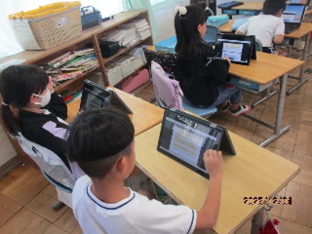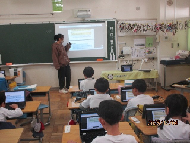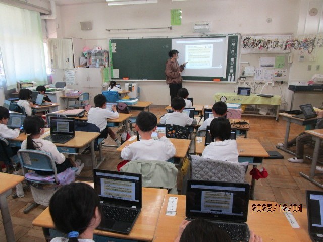 3組の教室では、一人一台のタブレットを使って、あらためて使い方の約束ごとについての指導が行われていました。学習のためのクロムブックですので、しっかりルールを守って正しく使えるようにしましょうね。