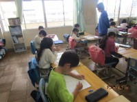 2組の校庭での体育は、ボール投げゲームの活動です。今日はサークルの中にある的を目がけて、攻守交替で行うゲームに挑戦です。攻める側と守る側に分かれ、メンバーで作戦を考えて取り組みます。チームで声をかけ合い、協力して取り組む様子に、子供たちの成長が感じられました。