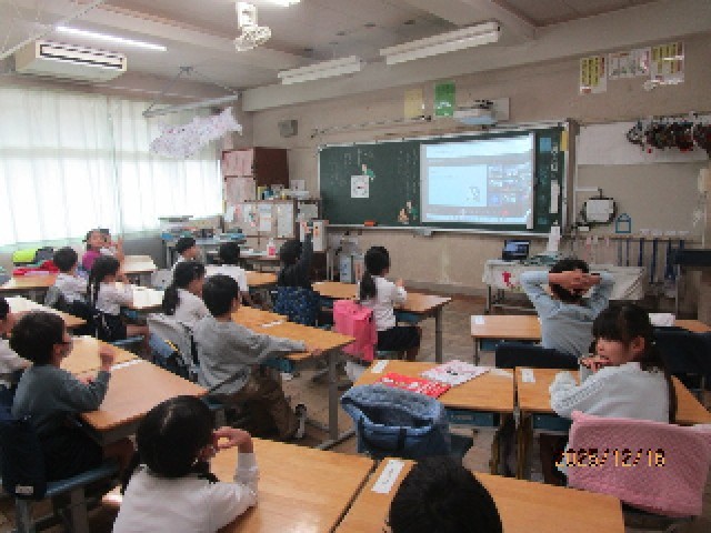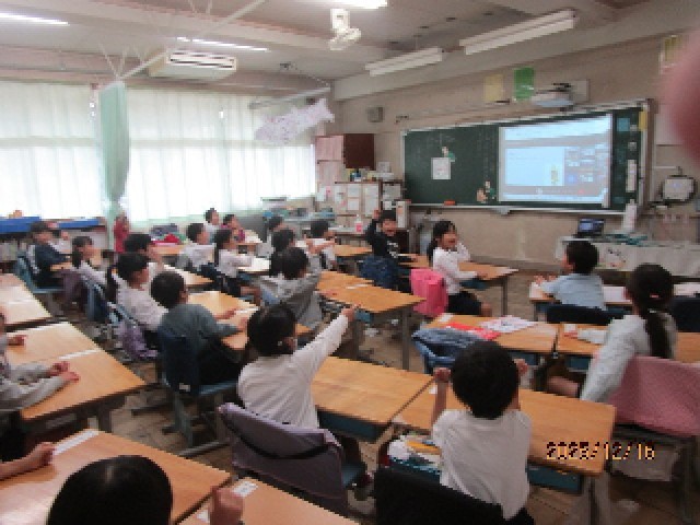 今朝の児童集会は、集会委員の児童が考えたクイズ集会で、ミートで行われました。内容は、普段の生活でよく目にするもので名前の分からないものを3択で当てる映像クイズです。フランクフルトなどにかけるケチャップとマスタードが同時に出てくる便利なものや、バナナの表面にある黒い斑点など、子供たちもよく知っていて、利用したことがあるものがたくさん登場しました。クイズはなかなか当たらなかったようですが、意外なネーミングになっていることに驚きと発見があって、どの教室からも感心する声があがっていました。集会委員の皆さん、楽しい企画をありがとうございました。