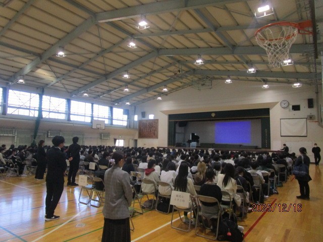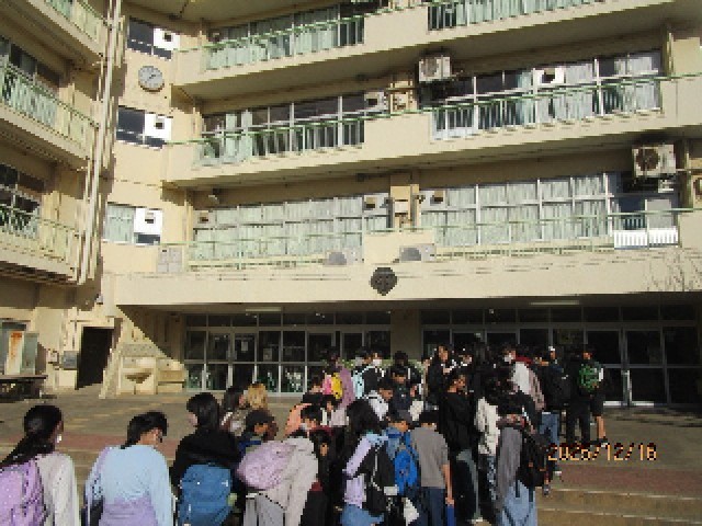 午後6年生は、学区内のつくし野中学校に出向いて、授業見学と学校説明会に参加しました。鶴間小以外にも、近隣の3つの小学校が一堂に会して開催され、体育館に集合しました。