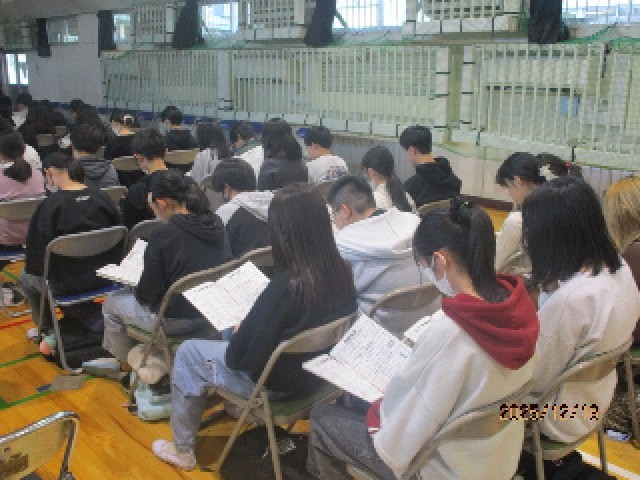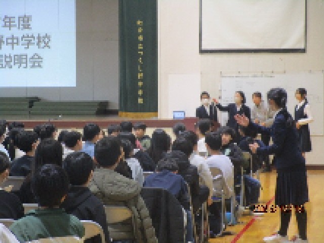 後半の学校説明会では、生徒会の生徒が中心になり、司会・進行が行われました。合唱部の美しい歌声が披露され、学校生活の説明や小学生からの質疑応答の時間もあって、中学進学への希望や期待がふくらんだと思います。ぜひ、ご家庭でも、今日の見学の感想をお子さんから聞いてみてください。