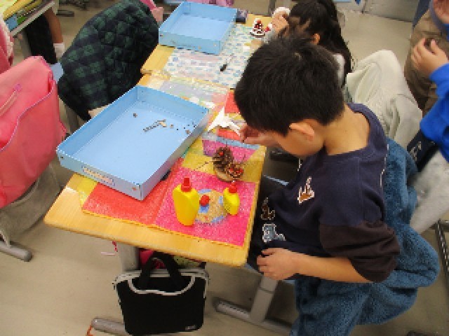 材料を選んで、いよいよ創作活動に入った子供たち。どの子も夢中になって作品作りに没頭していました。