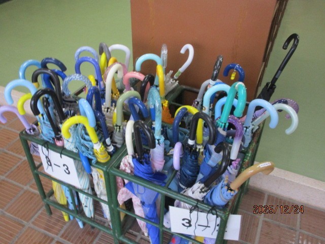 どの学年、クラスの傘立ても、しっかり傘が整理されていて、気持ちがいいです。今日は雨の1日になりそうですが、気分よく過ごせそうですね。