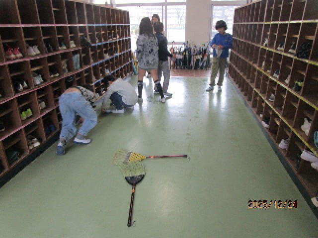 今日の4時間目は、大掃除をするクラスもあり、みんなで協力していつもより入念に掃除をしていました。床や机の脚、下駄箱など、普段できないところをきれいにして、気持ちよく明日の終業式を迎えられますね。
