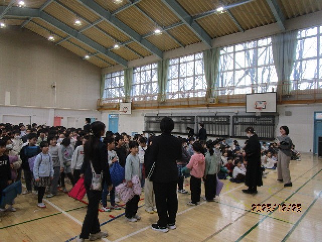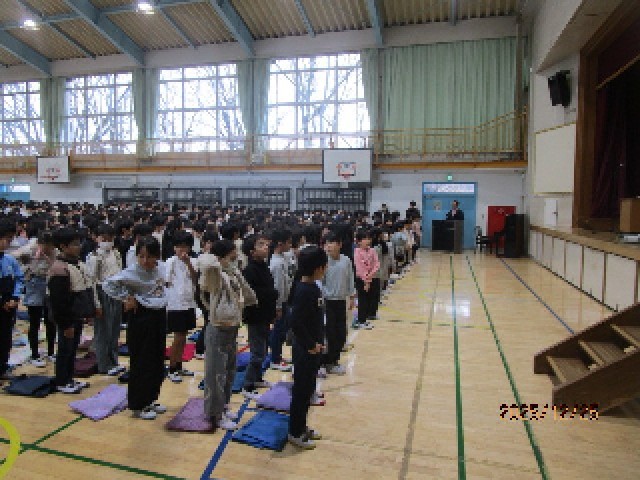 今日は朝から2学期の終業式が行われますが、体育館に一番乗りだったのは、1年生です。きちんと列を整えて並び、しっかりお兄さんやお姉さんたちを待ちます。よい姿勢は、上級生から教わったことですが、もう自分たちで完璧にできていて、とても立派でした。