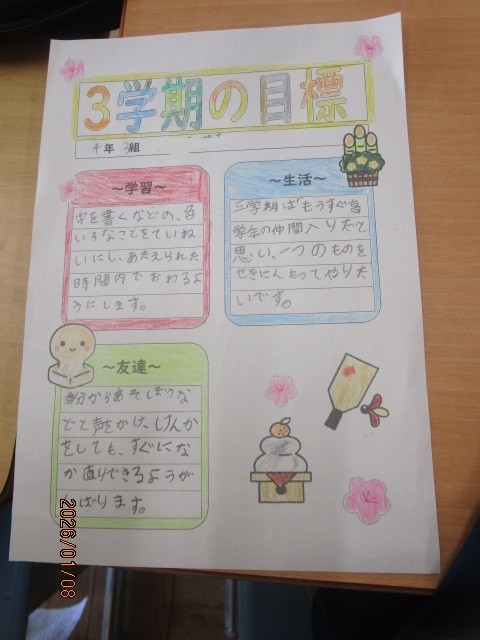 1月8日(木) 4年生 3学期のめあて