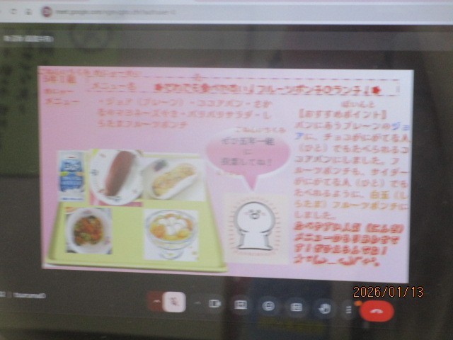 後半は、町田市主催の書初め展で特選に選ばれたお友達の紹介と、給食総選挙についての説明がありました。