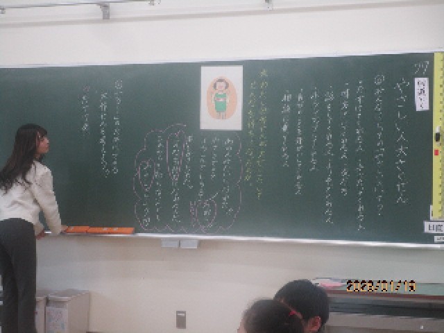 1組の5時間目は道徳の授業で、「やさしい人だいせん」の教材から、困っている人の立場になり、やさしい思いやりの心について考える学習です。子供たちにとって「やさしい人」のイメージはいろいろんのようですが、まずはクラスのためにできる「大作戦」を考えて、みんなで実行していこうという話し合いが活発に行われていました。作戦を通して、思いやりであふれる教室にしてくださいね。