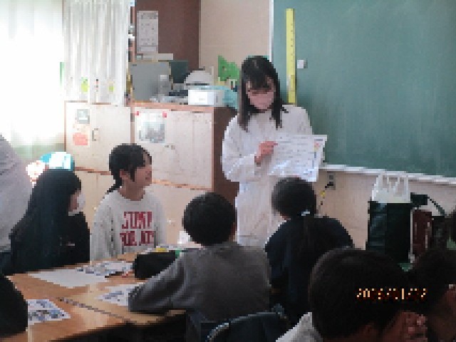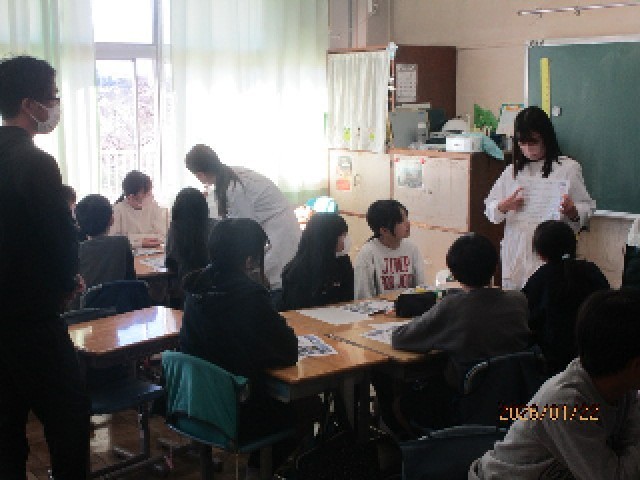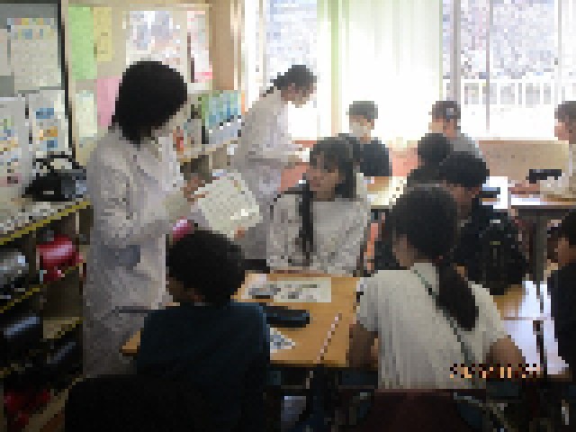 授業の後半は、薬科大学の学生さんにも加わってもらい、グループに分かれて、さらに具体的な講義をしていただき、理解を深めることができました。今日は子供たちのために、貴重なお話を聞かせていただき、ありがとうございました。6年生は今日学んだ知識をもとに、この先の学校生活に役立てていってほしいと思います。