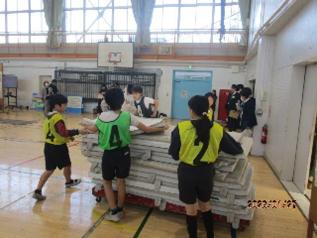 今日の5時間目は、東京教師道場の部員である甲斐主任教諭による、校内研究授業を兼ねた授業公開(成果報告会)で、5年4組でマット運動の授業が行われました。校内の先生以外にも、道場の先生方や市内外の先生方が授業を参観し、子供たちは少し緊張気味な面持ちで活動が始まりました。
