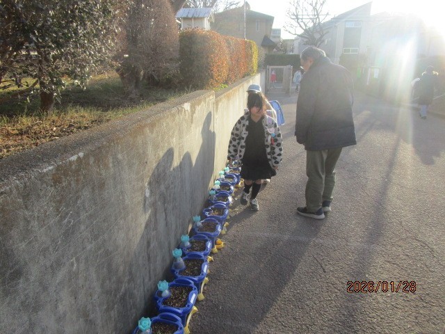 今日も早朝から子供たちはしっかり並んで待つことができています。寒いのにみんな元気です。開門の後、2年生のお友達が、育てているラディッシュの鉢に水をあげていました。植物を大事にするやさしい気持ちがあるのも、鶴間小の子供たちのすてきところです。今日もみんなで楽しく1日過ごしてきましょう。