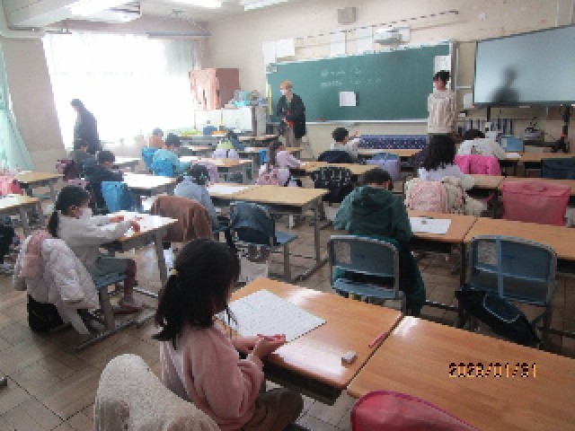 今日の午前中、鶴間小学校を準会場とする「漢字能力検定」が、およそ7年ぶりに復活開催されました。前半は、8~10級を受ける児童が学校に集合し、検定を受検しました。1年生は、いつもと違う教室で、緊張した表情で問題に挑戦していました。