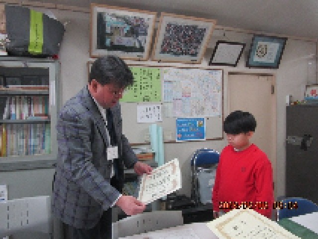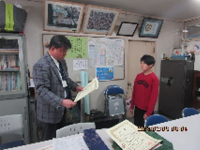 校長の話の後、今月も各分野で活躍している児童の表彰を行いました。空手の関東大会で優秀な成績を収めた4年生と、町田市民文学館ことばランドのショートショートコンクールで入賞した5年生を紹介しました。さらに、鶴間小学校の花壇の整備を行っていただいている「植栽ボランティア」の方々のご尽力に対して、町田市から賞状をいただいたので、子供たちに紹介しました。