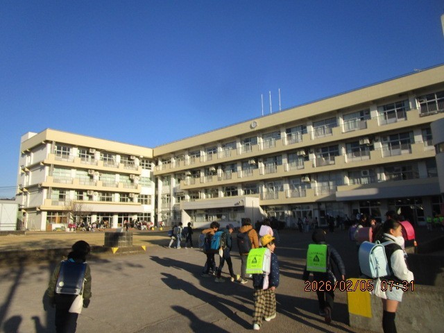 今朝も冬晴れの青空の広がる朝を迎えました。いつもと変わらず、子供たちが元気に登校してきました。元気なあいさつで今日も1日がスタートします。