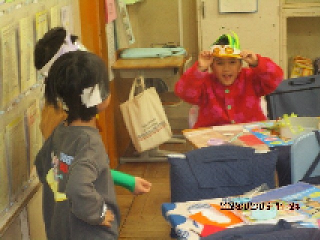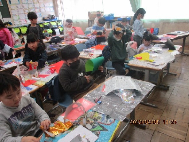 2組の図工は、「わっかでへんしん つくってへんしん」の課題です。アイマスクの形のキットを使って、自由に色を塗ったり、模様を描いたりして仕上げ、かっこよく変身しました。それぞれ工夫して変身することができ、楽しい課題になりました。