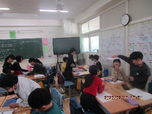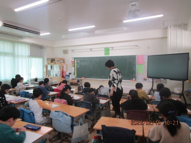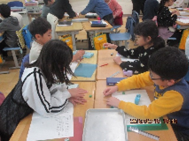 3時間目の2組の理科の授業は、「磁石」の実験の課題です。離れていても、磁石は鉄を引き付けるかという問題に対して、既習事項や自分の経験から予想を立て、グループで実験をして検証します。友達同士で協力しながら実験を進め、結果についてもきちんとノートに整理して考察につなげていました。