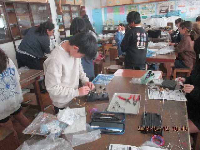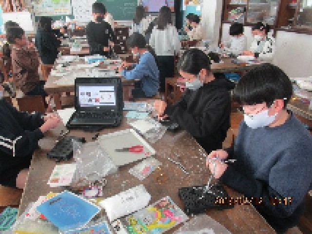 3組の図工の授業は、新しい課題に入っています。「ワイヤーワールド(仮題)」のタイトルで、針金を折り曲げて立体作品に仕上げます。まずは自由に折っては伸ばし、曲げたり切ったりしながら形にしていきます。それ以外にも、持参したビーズやモールを組み合わせて彩りも加えていきます。試行錯誤しながらも、子供たちはみんな夢中になって造形活動を楽しんでいました。