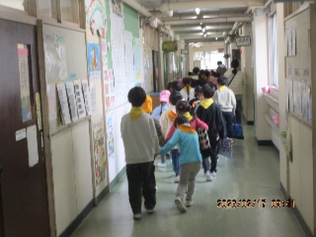 今日の1年生は、朝から近隣の幼稚園・保育園の園児の子たちをお迎えしての交流活動を行いました。この4月より新1年生になる100人以上の年長さんを、1年生が手を引いて教室を案内したり、体育館で絵本を読み聞かせたりして、楽しく交流しました。すっかりお兄さん、お姉さんになった1年生の子供たち。もうすぐ進級して、立派な2年生になれますね。