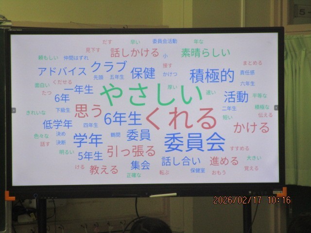 3時間目の1組の道徳は、「バトンをつなげ」の教材を使って、よりよい学校生活について考える授業です。卒業を目の前に控えた6年生との関わりをふり返り、4月からは自分たちが最高学年として、学校を引っ張っていくという自覚と覚悟をもたせようと授業は進められました。子供たちからは積極的な発言が多く見られる中、表情には責任感と緊張感が表れていました。