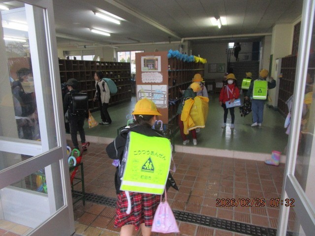 今朝は久しぶりの雨で、傘をさしての登校になりました。どの学年も上手に傘の片付けができ、特別時程の1時間目に間に合うように教室に入っていきます。今日は1日雨降りになりそうですので、室内で落ち着いて過ごしていきましょう。