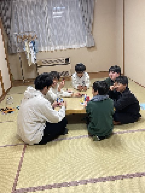 すべての活動をみんなで協力して取り組んだ5年生ですので、次の活動までの間に自由時間ができます。束の間のひとときを、部屋のメンバーでゲームをやって過ごしました。担任の先生も誘って、楽しい時間を過ごしていました。