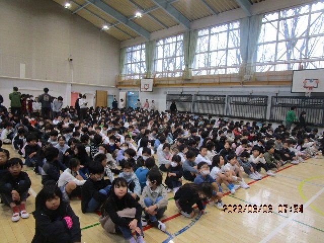 3月の全校朝会は今年度最後なので、体育館に全校児童が参集して行いました。校長先生からは、学習の「まとめ」と新年度に向けての「準備」について話がありました。春は「別れと出会い」の季節です。3学期の残りの日々を大切に過ごし、心の準備と気持ちの整理をしながら新年度を迎えましょうね。