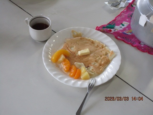 3組の5・6時間目の家庭科は、小学校での最後の調理実習です。パンケーキを作り、紅茶を入れてみんなで会食しました。班で雑談しながら、楽しいひとときを過ごせたようです。