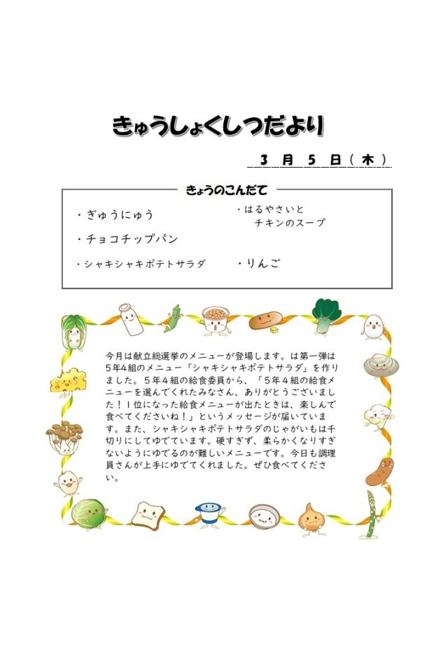 2026年3月5日の給食