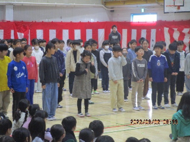 4年生はプレゼンを使っての鶴間小にまつわるクイズを紹介してくれました。6年生は全問正解を目指します。