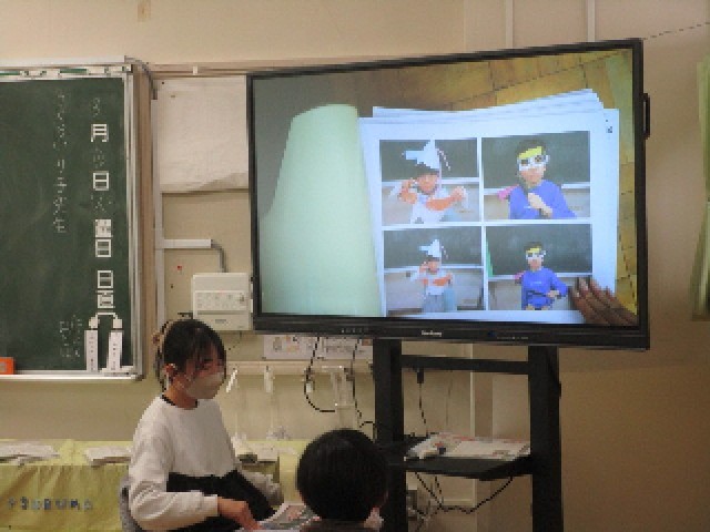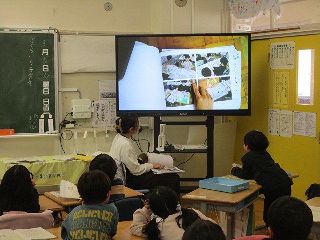 3組の国語の授業は、この1年間の学校生活をふり返って、楽しかったことやうれしかったことなどを思い出しながら、作文を書く課題です。今日は、先生が4月から撮り貯めていた写真を見ながら題材探しをしました。いろいろな行事などをふり返り、一番印象に残った出来事をテーマにして、1年間の締めくくりの作文を書いていきましょう。
