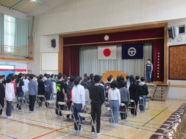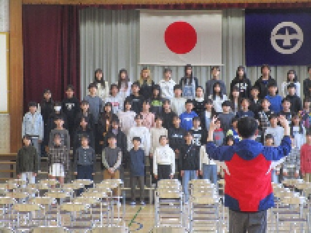 体育館では、6年生が卒業式に向けての練習が本格的になってきました。今日は、舞台上での並び方や式の流れを確認した後、合唱の練習を行いました。みんな表情が引き締まっていて、緊張感をもって練習している様子がうかがえました。