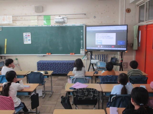 今年度の最後の児童集会は、リ6年生にまつわるクイズに、みんなで応えるリモート集会です。5年生の集会委員が中心となって行われました。それぞれのクラスで、6年生のことを思い出しながら答えていました。6年生の教室でも、自分たちのことがクイズになっているのを興味深く思いながら参加していました。